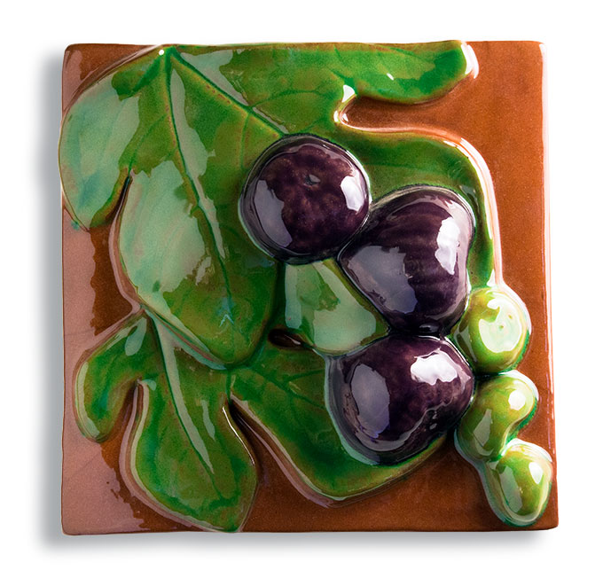 The bright yellow fruit and vivid green leaves really pop against the black background of this handsome tile. Looks great on a kitchen wall or counter top. All our tiles arrive with installed picture wire so they are ready to hang. You can add a tile easel (sold separately) to display your tile on a bookshelf or cabinet.